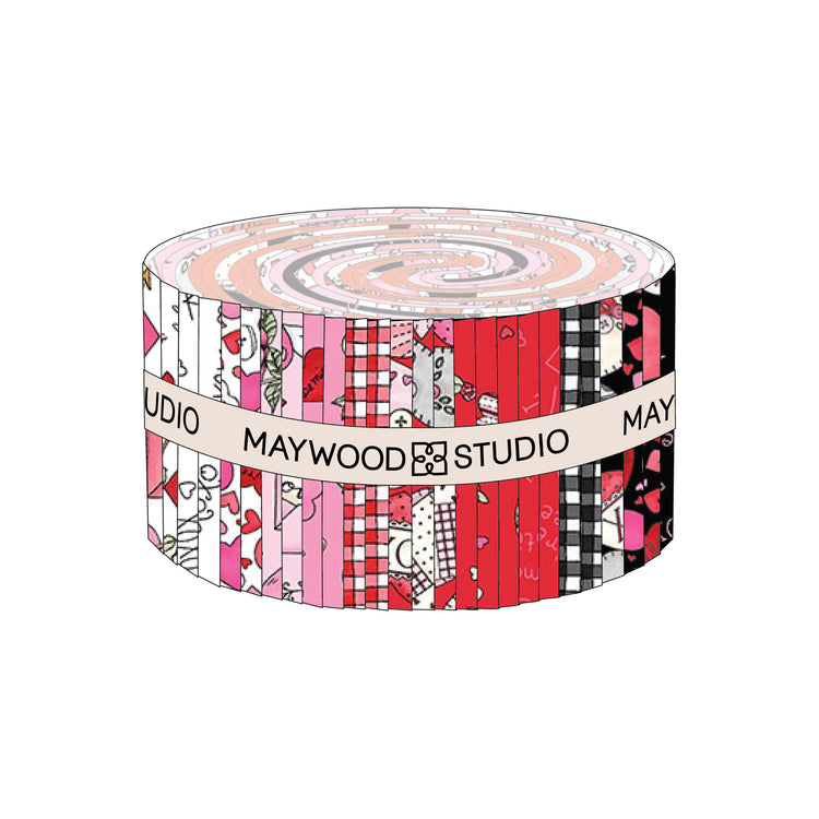 This precut bundle includes 40 strips (2.5" x 43/44") from the I Heart You collection. Duplicates included.