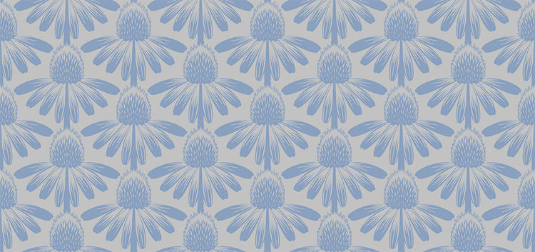 Bring a breath of fresh air to your creations with Coneflower in Sky. This serene two-tone print features stylized coneflower blooms in a calming blue palette, evoking clear skies and tranquil days. The intricate linework adds depth and movement, making it a versatile choice for quilts, garments, or home décor that seek a touch of peaceful elegance.