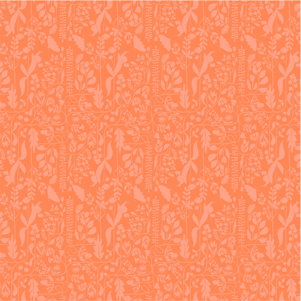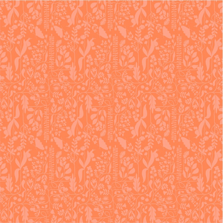 This tonal print from Insectarium by Tamara Kate for Windham Fabrics features delicate botanical silhouettes layered over a warm coral background. The subtle contrast and flowing shapes create a soft, organic look that works beautifully as a blender or accent in quilts and home décor. 100% cotton.