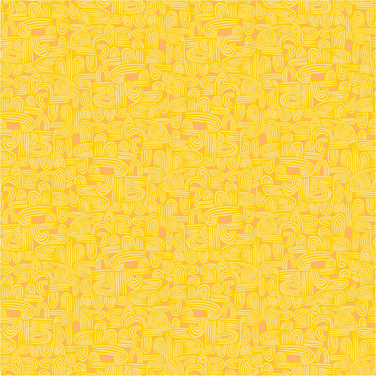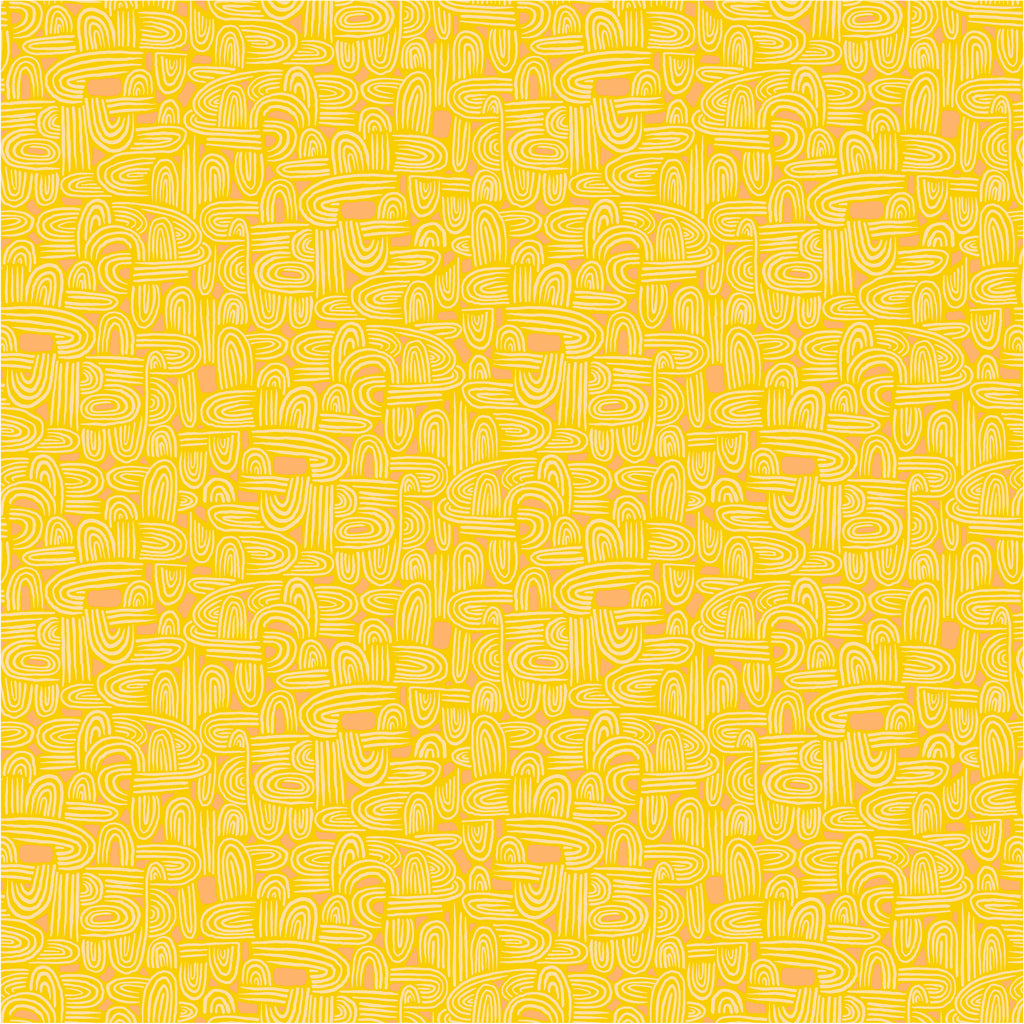 This vibrant yellow print features an abstract linework design with playful, looping shapes that create a lively sense of movement. Its tonal look and modern style make it a versatile blender or accent print, perfect for adding brightness and energy to any project. 100% cotton.