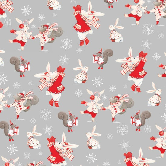 This adorable winter collection from Studio E will get you in the holiday spirit! Features bunnies and squirrels on a grey background with white snowflakes. 100% Cotton. 44 inches wide. Sold by the yard.