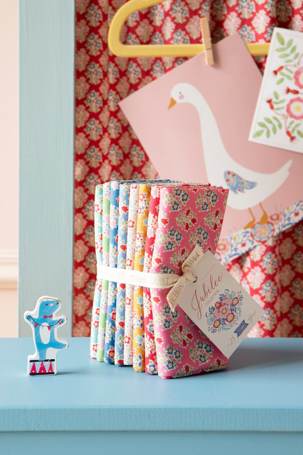This 8-piece fat quarter bundle features the complete Farm Flowers blender set from Tilda’s Jubilee collection, with one fat quarter of each colorway. These small-scale vintage florals include cheerful shades of red, pink, mustard, sand, light blue, blue, green, and teal. Designed as versatile coordinates, the Farm Flowers group adds color and charm without overpowering your project. Printed on premium 100% cotton, these fat quarters pair beautifully with Jubilee’s hero prints or work perfectly in summery, cottage-style patchwork on their own.