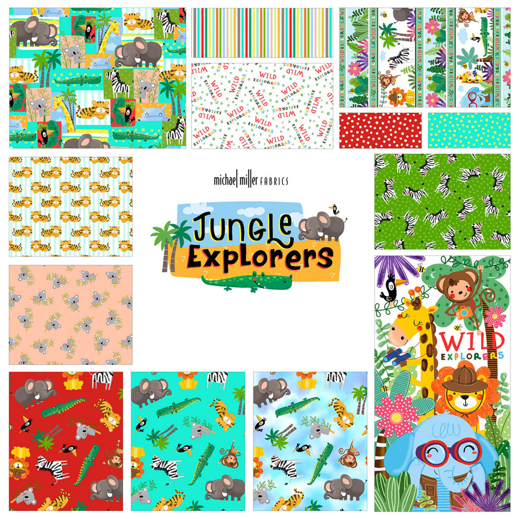 Embark on an exciting adventure with "Jungle Explorers," a vibrant fabric collection designed for kids. This collection transforms any space into a playful jungle oasis, featuring adorable animals such as tigers, koalas, zebras, and more against a backdrop of lively colors. Crafted to spark young imaginations, these charming creatures and jungle scenes promise endless exploration.