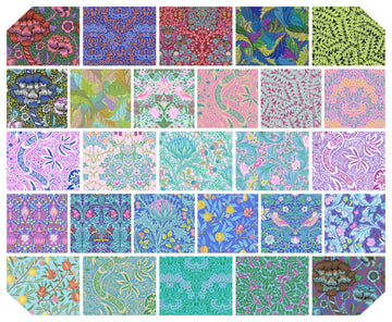 This precut bundle includes 42 squares (10" x 10") from the Kaffe Fassett x Morris & Co collection.