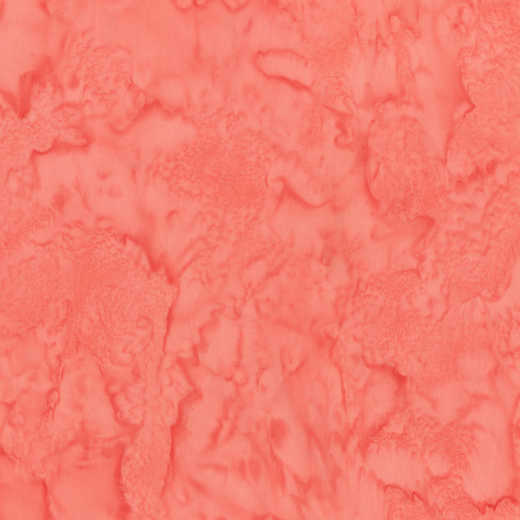 Lava Solids – Coral (1473) by Anthology Fabrics is a richly textured batik in a warm coral hue, blending soft peachy-pink tones with subtle tonal variation. The marbled, watercolor-like texture adds visual depth while remaining soft and smooth to the touch. Premium 100% cotton with a hand-dyed appearance, ideal for tropical quilts, modern projects, or pairing with floral, beachy, or sunset-inspired palettes.