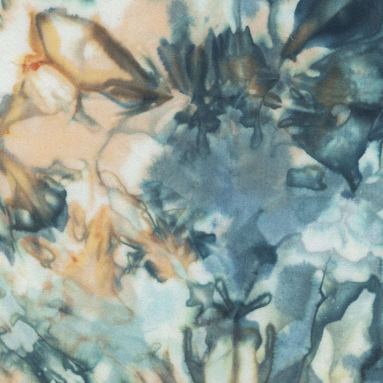 Lava Solids – Glacier (1896) by Anthology Fabrics is a stunning hand-dyed batik featuring soft washes of icy blue, misty gray, and warm beige. Its layered marbling evokes the organic movement of melting ice, frozen lakes, or rocky alpine terrain. Both painterly and naturalistic, this unique palette brings cool serenity and earthy warmth into perfect balance. Ideal for quilts, wearable art, and projects that lean into texture and mood.