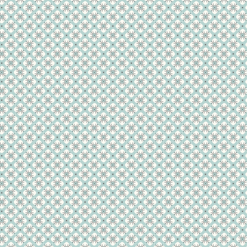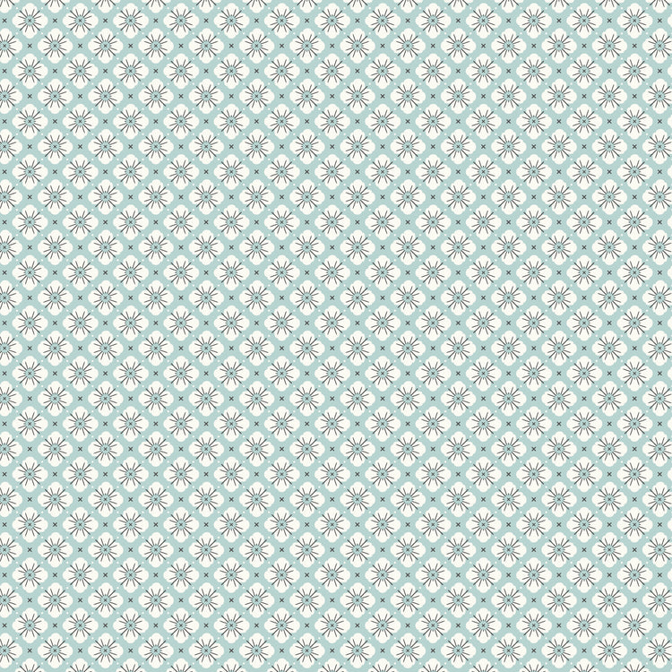 This fabric features a charming design of small, evenly spaced floral motifs in shades of white and light blue against a soft blue background, creating a delicate and airy aesthetic perfect for quilting projects. The pattern's simplicity and elegance make it versatile for various sewing applications, enhancing the visual appeal of any project with its gentle, vintage-inspired look.