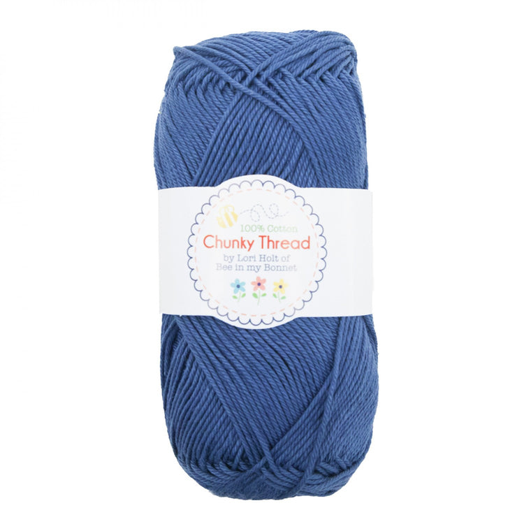 Lori Holt's Chunky Thread for Riley Blake is 100% Cotton. Perfect for knitting, crochet or crafts. This fine/sport weight yarn can also be used for decorative stitching. 50 gram skein (142 yds); 100% Cotton; Crochet hook size E or G; Knitting needle size 5 or 6. Machine wash cold or warm, tumble dry or lay flat to dry. Do not iron or dry clean.