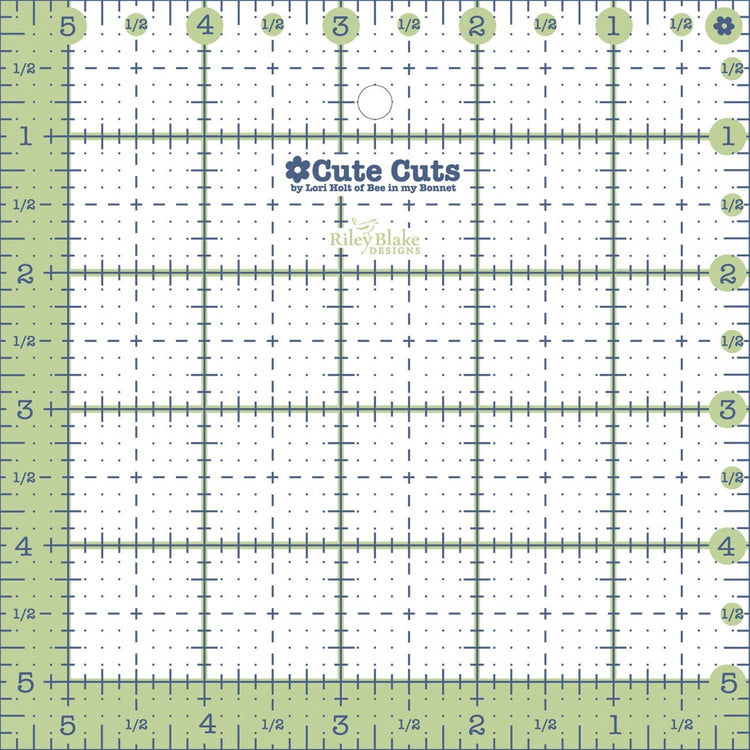 Cute Cuts Square Ruler - 5.5in x 5.5in. Designed by Lori Holt of Bee in my Bonnet for Riley Blake Designs.Non-Slip Backing.High Grade Acrylic.