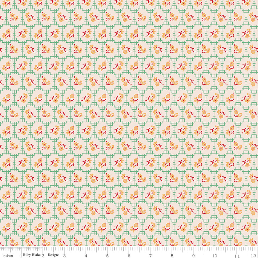 The Mercantile fabric collection by Lori Holt for Riley Blake is a delightful blend of vintage charm and modern design. This collection features a mix of classic prints, florals, and intricate patterns that evoke the feel of a quaint, old-fashioned mercantile store. The color palette is a harmonious mix of soft pastels and bold, vibrant hues, making it versatile for a variety of quilting and sewing projects. Whether you're looking to create a nostalgic quilt, home décor items, or unique apparel, Mercantile offers a timeless appeal that blends beautifully with Lori Holt's signature style.