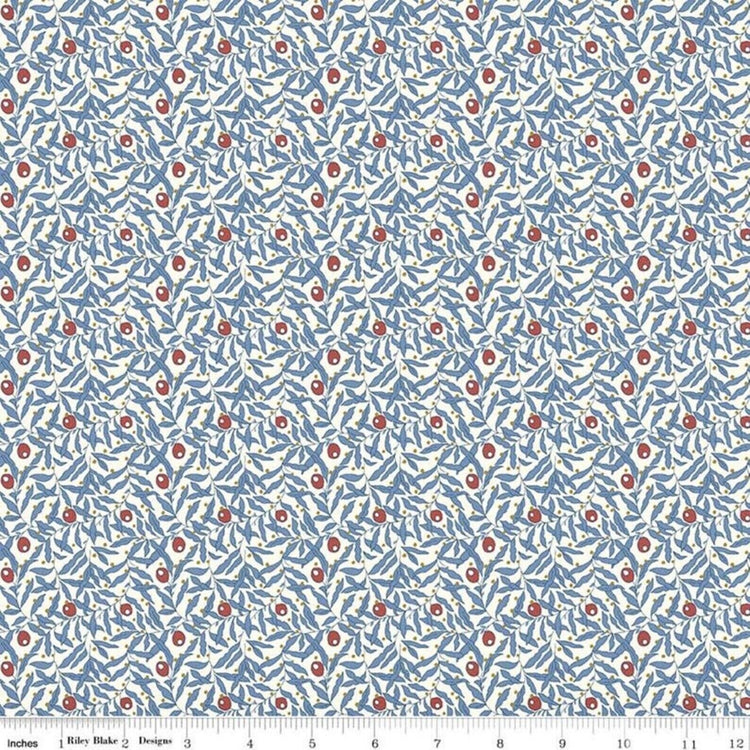 A simple but classic design of small scattered berries and dense leaves. Reminiscent of a snowy winter scene, the Holiday Berries pattern was inspired by a Liberty Fabrics archive design originally created in 1979.
