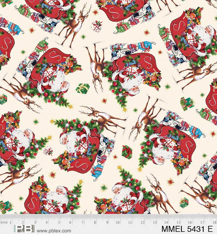 Who can resist a rosy-cheeked Santa? Lesa Marino’s artwork in the "Merry Melody" collection brings back the charm of holidays from a nostalgic era. The large panel features Santa with his toy-filled sleigh, making it perfect for a quick project with simple frames or as a focal point in a larger quilt. The coordinating prints capture the playful spirit of the season, with adorable red birds and a delightful sheet music stripe that you’ll absolutely adore! This cheerful collection is perfect for quilting, home decor, and holiday crafts, adding a touch of vintage charm and festive fun to any project.