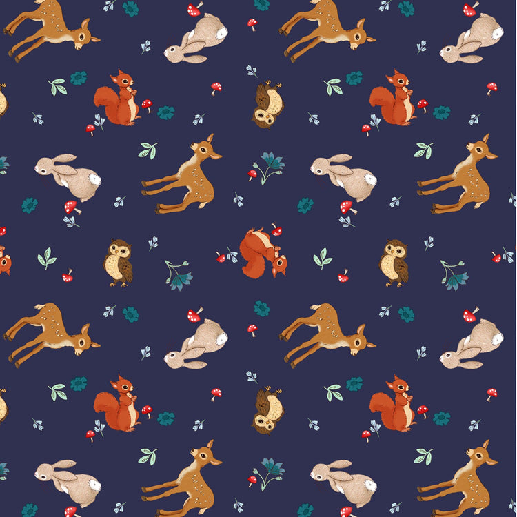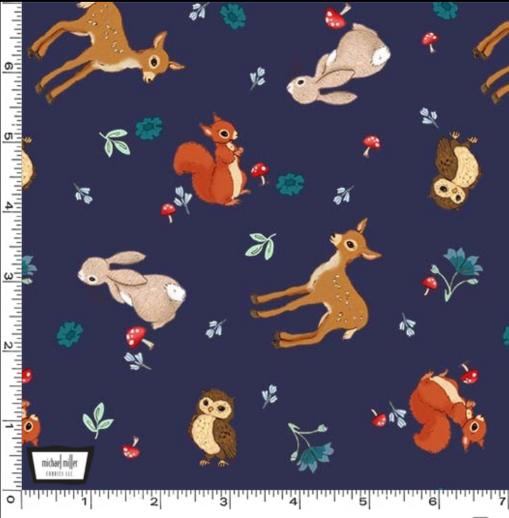 The Midnight Forest collection by Belle & Boo has been inspired by nature — the allure of rambling walks hoping to glance a shy woodland animal, and the magic of childhood spent in the forest with your friends. Perfect for quilting, apparel, or home decor projects.