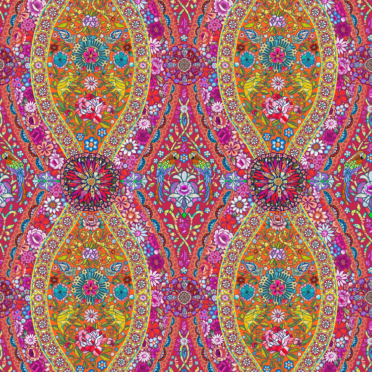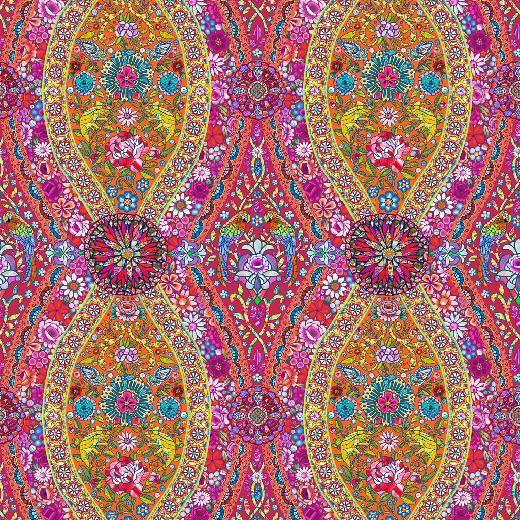The Murano collection invites you to the most beautiful Venetian palaces... Where rare stone mosaics and clever geometry create exquisite decorations... Where on an island in the lagoon, the art of glass blends with floral motifs to create dream-like jewelry. Animals, unusual flowers, and tiles intermingle to create a luxurious baroque style. The prints in this collection are 100% cotton and 44" Wide.