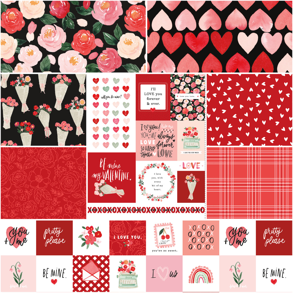 My Valentine by Echo Park Paper Co. is a vibrant, romantic collection featuring a palette of red, pink, white, and black, with a focus on hearts and florals. Perfect for creating love-filled quilts, home decor, and gifts, this collection brings a bold yet sweet touch to any project.