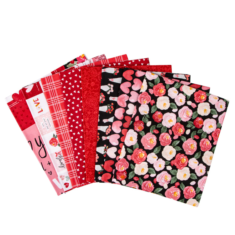 This precut bundle includes 1-yard cuts (36" x 43/44") from the My Valentine collection by Echo Park Paper Co. for a total of 8 yards of fabric. No duplicates.