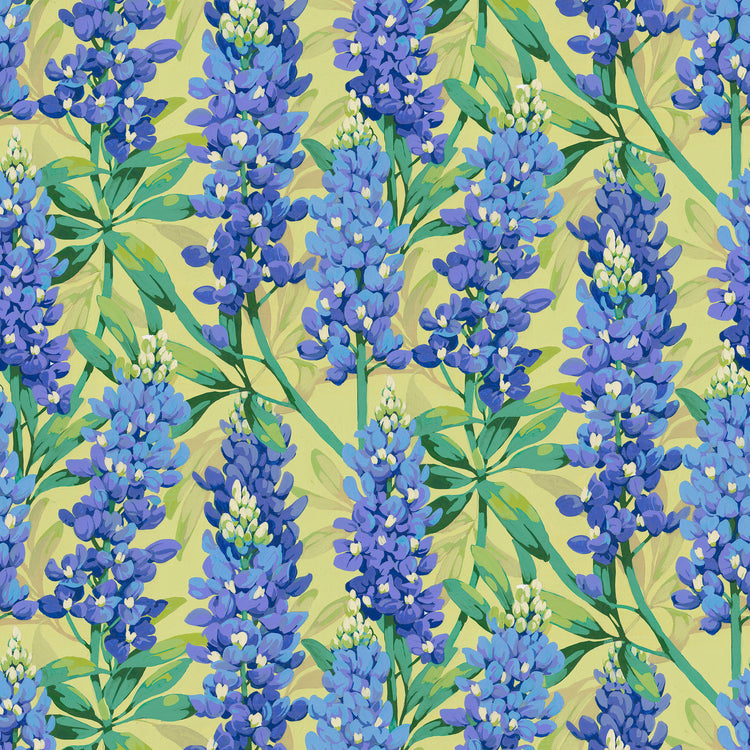 This 100% cotton fabric features expressive blue florals scattered across a lively, rich green background. The painterly style and loose composition give the print a natural, hand-painted feel, full of movement and depth. With its vibrant contrast and organic beauty, this fabric makes a stunning statement in quilts, accessories, and garden-inspired decor.