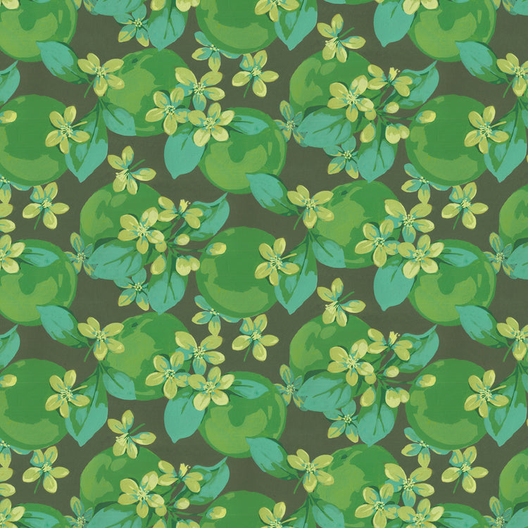 This 100% cotton print features soft green blossoms layered over a rich, leafy green background, creating a subtle yet sophisticated tone-on-tone effect. The painterly florals have an airy, organic feel, with brushstroke textures that add depth without overwhelming the eye. This print is a beautiful choice for adding a gentle, nature-inspired touch to quilts, apparel, or elegant home decor.