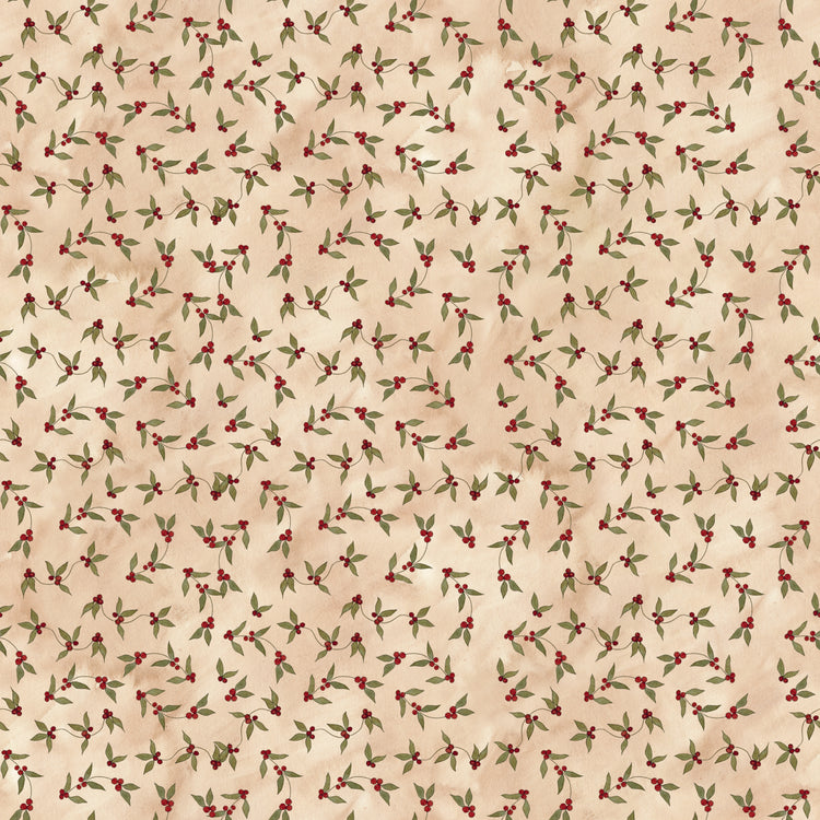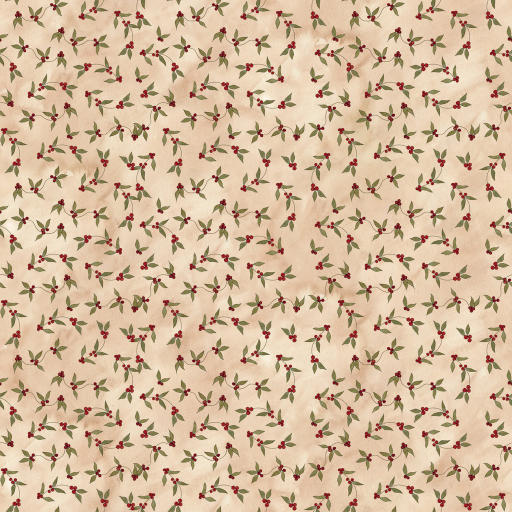 Delicate red berries and green holly leaves are softly tossed across a parchment backdrop, offering a light, airy option for seasonal projects.
