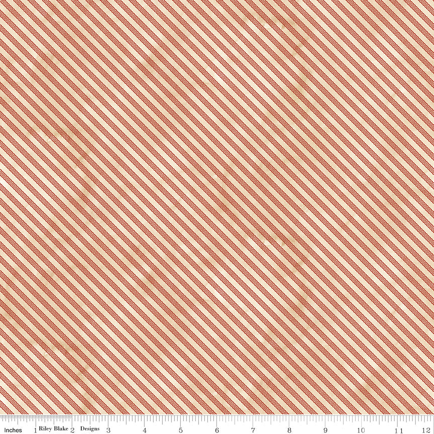 A warm parchment background is layered with slanted tan ticking stripes in this versatile neutral print. The delicate lines add structure without pulling focus, making it ideal as a background or blender.