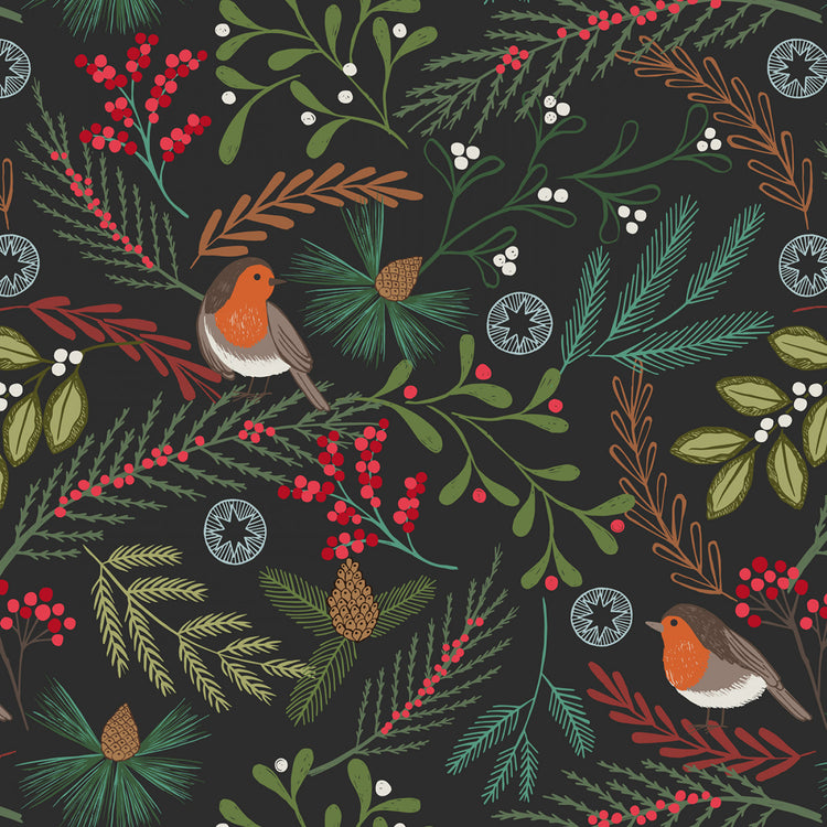 New Forest Winter Flannel | Robin on Dark by Lewis & Irene | 100% Cotton Flannel