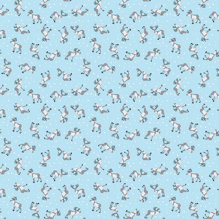 A gentle scatter of reindeer silhouettes prance across a snowy pale blue background in this Scandinavian-style holiday print. The small scale makes it easy to work into patchwork, borders, or accent pieces without overpowering your design. A soft and wintry palette gives this print a calm, peaceful vibe that works beautifully in both modern and traditional holiday projects.