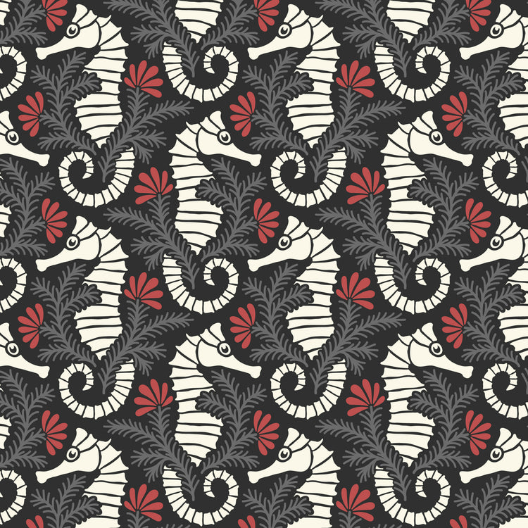 This fabric features a captivating design with swirling patterns of stylized birds and foliage in shades of charcoal, white, and vibrant red. The intricate repeat pattern creates a dynamic visual flow, perfect for quilters and fabric enthusiasts looking to add a touch of nature-inspired elegance to their projects. Made from 100% Organic Cotton, this fabric offers both quality and sustainability, ensuring your creations are as eco-friendly as they are beautiful.