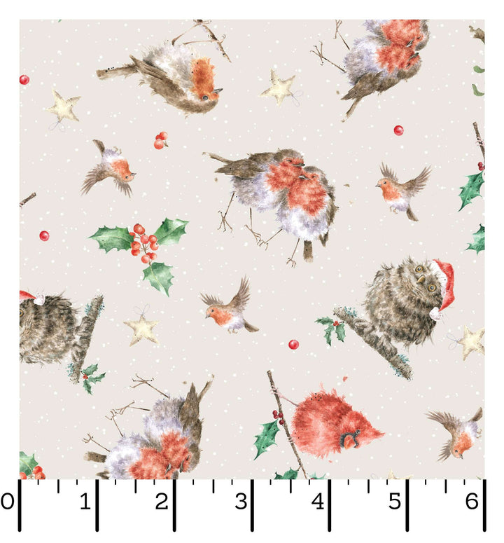 One Snowy Day | Ecru Feathered Friends by Hannah Dale for Maywood Studio | MASD10374-E