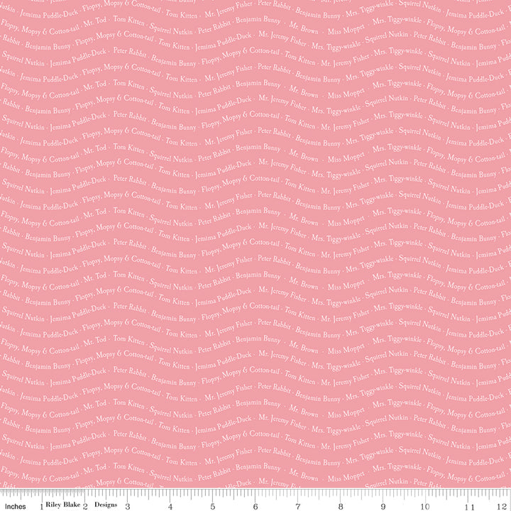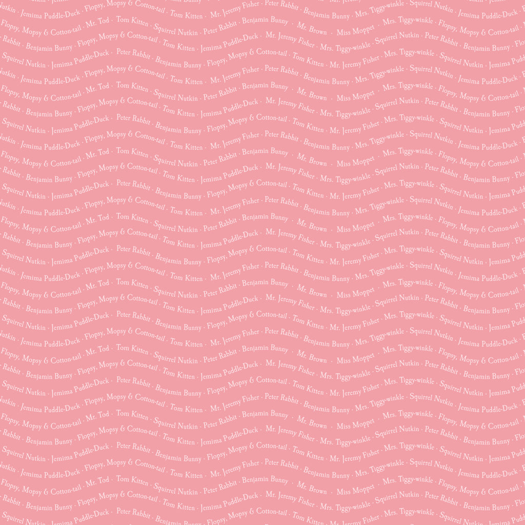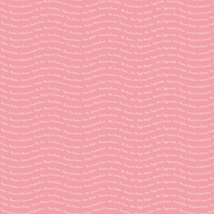 This text print features wavy lines with the names of characters from Peter Rabbit. Official licensed product. BEATRIX POTTER™.