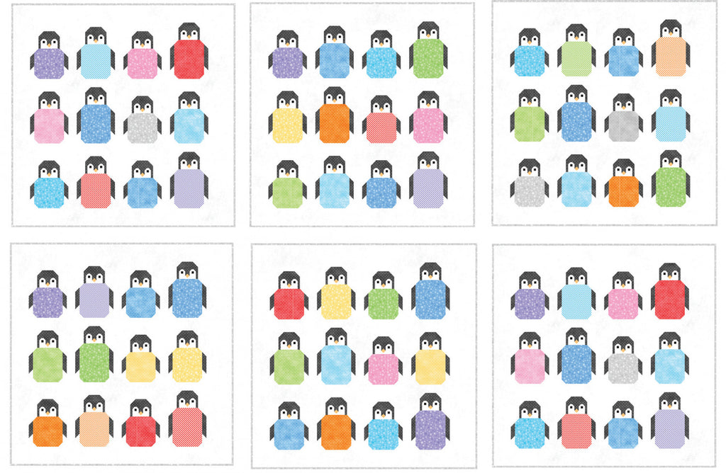 Choose your own adventure: the Penguin Party quilt kit comes with fabric to make any of the six pictured versions (and more) so you can customize your project! Visit