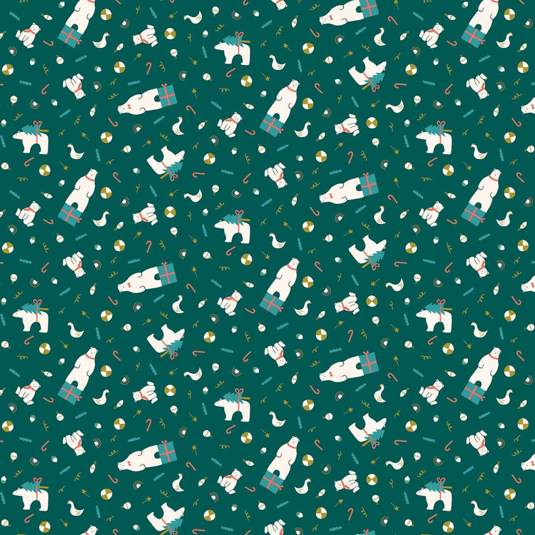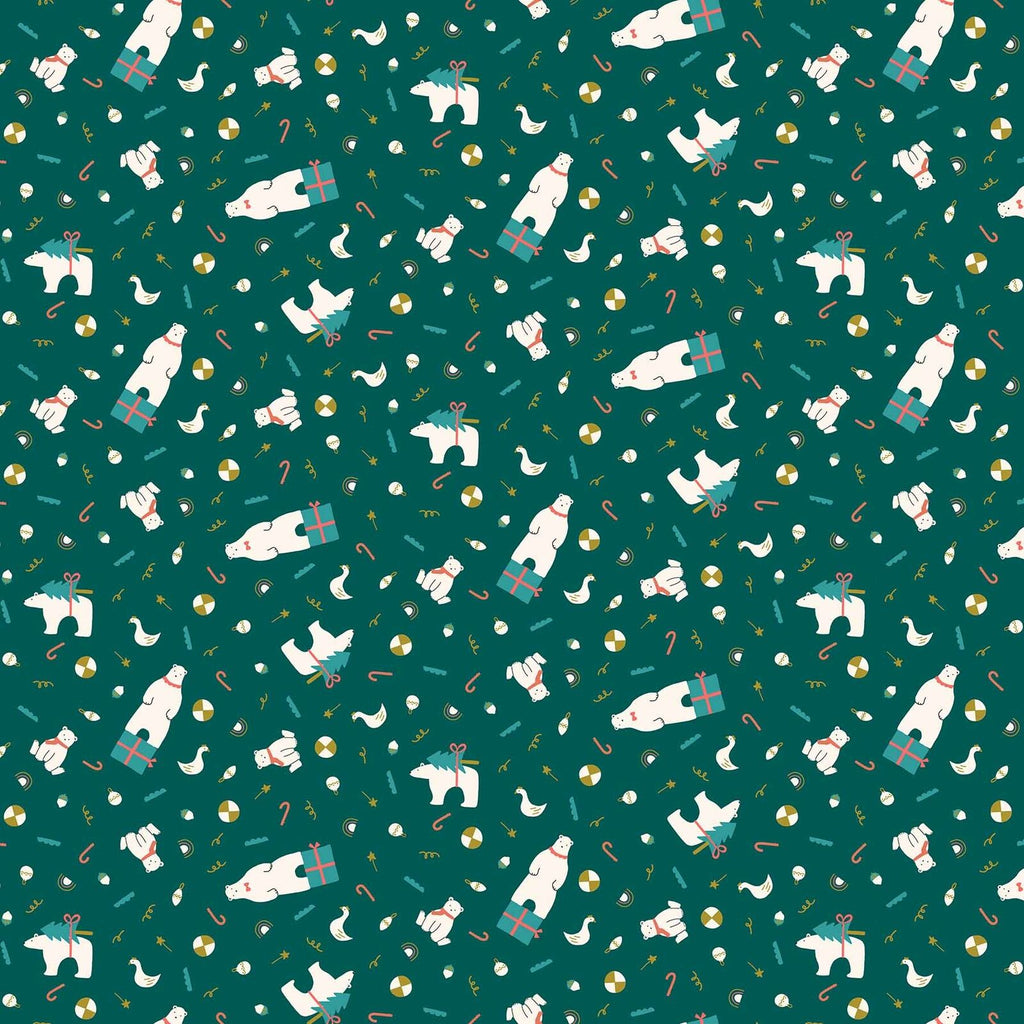 Polar Magic by Figo Fabrics - Bear Presents on Teal (90174M-68) (one yard)