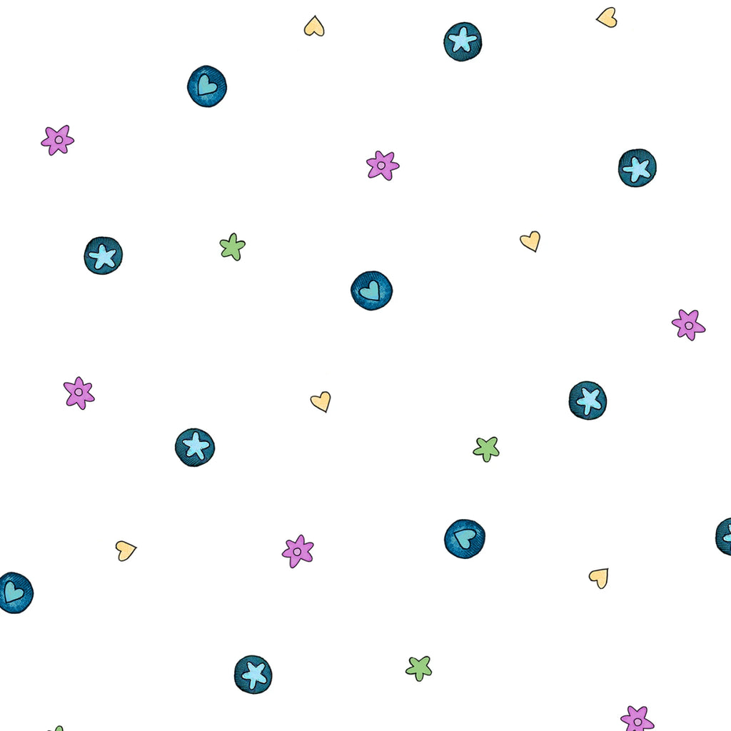 This 100% cotton fabric from Pondside Pals by Jeremiah Ketner features tiny hearts, stars, and flowers scattered across a clean white background. The simple, cheerful motifs and bright pops of color make it a perfect coordinate for juvenile quilts, playful accents, and whimsical sewing projects.