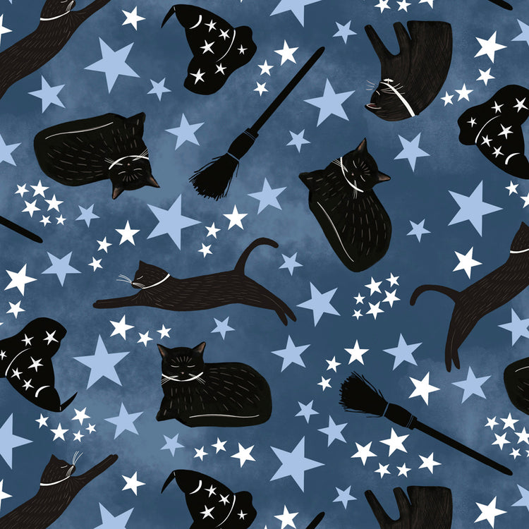 Practical Magic | Black Cat Toss Blue by Jacqueline Wild for P&B Textiles | PMAG5362-B