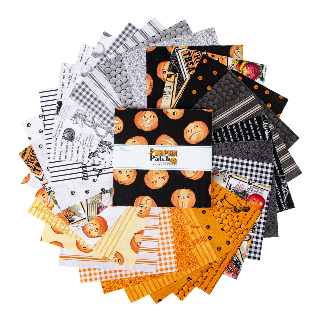 J. Wecker Frisch's "Pumpkin Patch" collection for Riley Blake is a vintage-inspired blend of warm oranges, blacks, greys, and whites. It features beautifully illustrated pumpkins, seed packet motifs, and classic stripes and gingham patterns. This collection captures the nostalgic essence of fall, making it ideal for cozy quilts and autumn-themed projects.