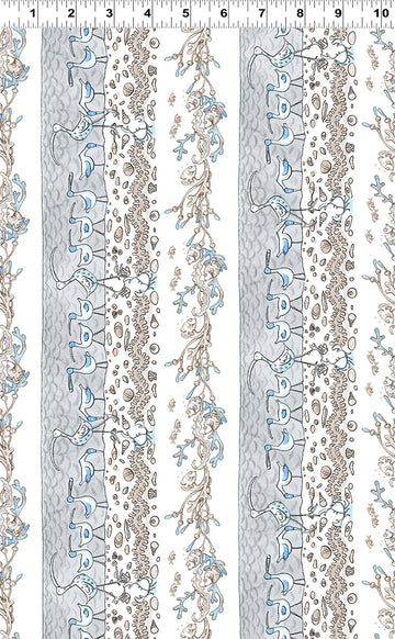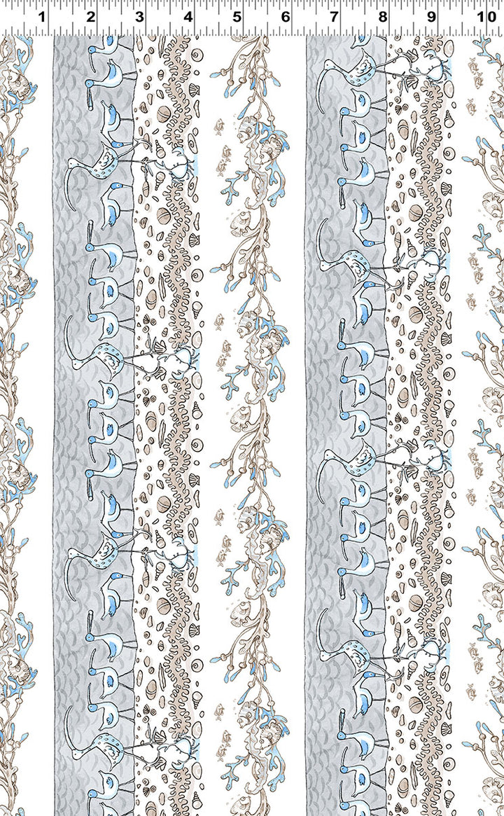 This running stripe pattern features rows of birds on a beach. Perfect for borders. 100% Cotton. 43/44" Wide.