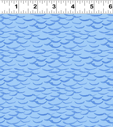 This print features a wave pattern on a blue background. 100% Cotton. 43/44" Wide.
