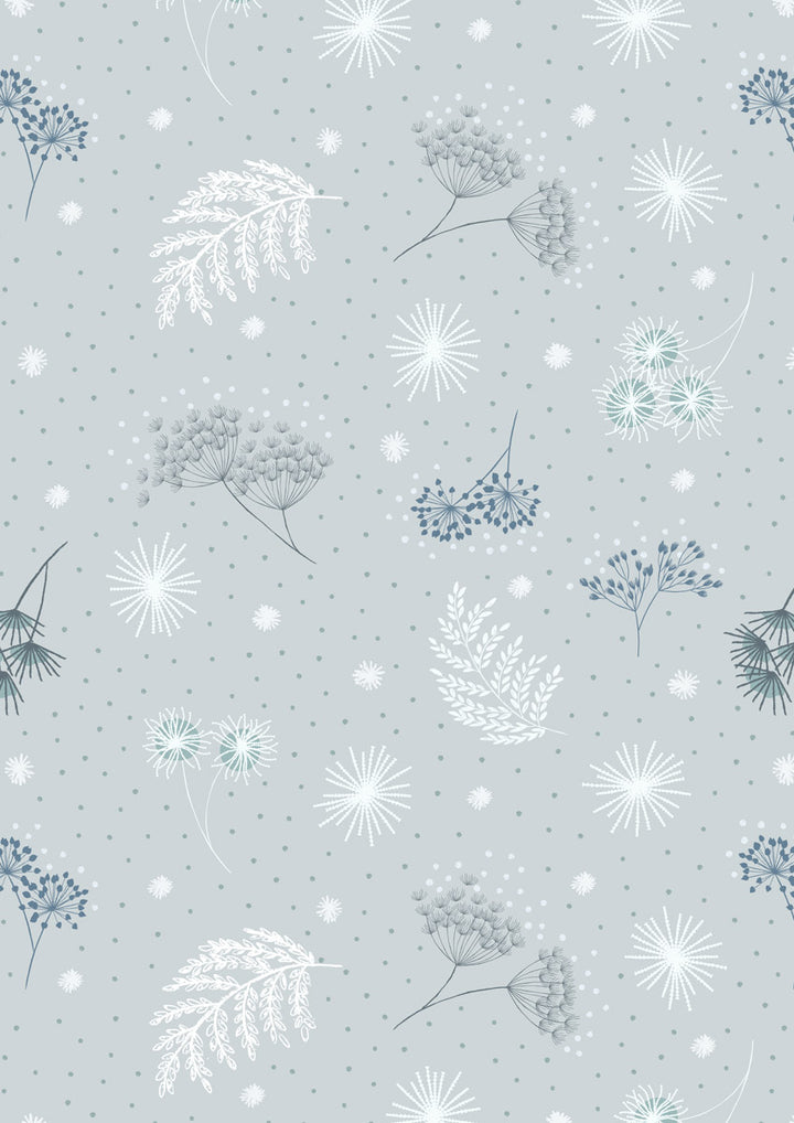 Secret Winter Garden Flannel | Frosted Garden on Light Grey by Lewis & Irene | 100% Cotton Flannel
