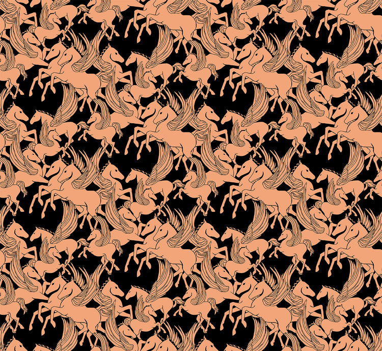 In this rich antique colorway, terracotta Pegasus figures fly across a dramatic black ground. The result is moody and graphic with an old-world, etched quality that adds depth and intrigue to your projects.