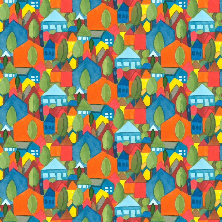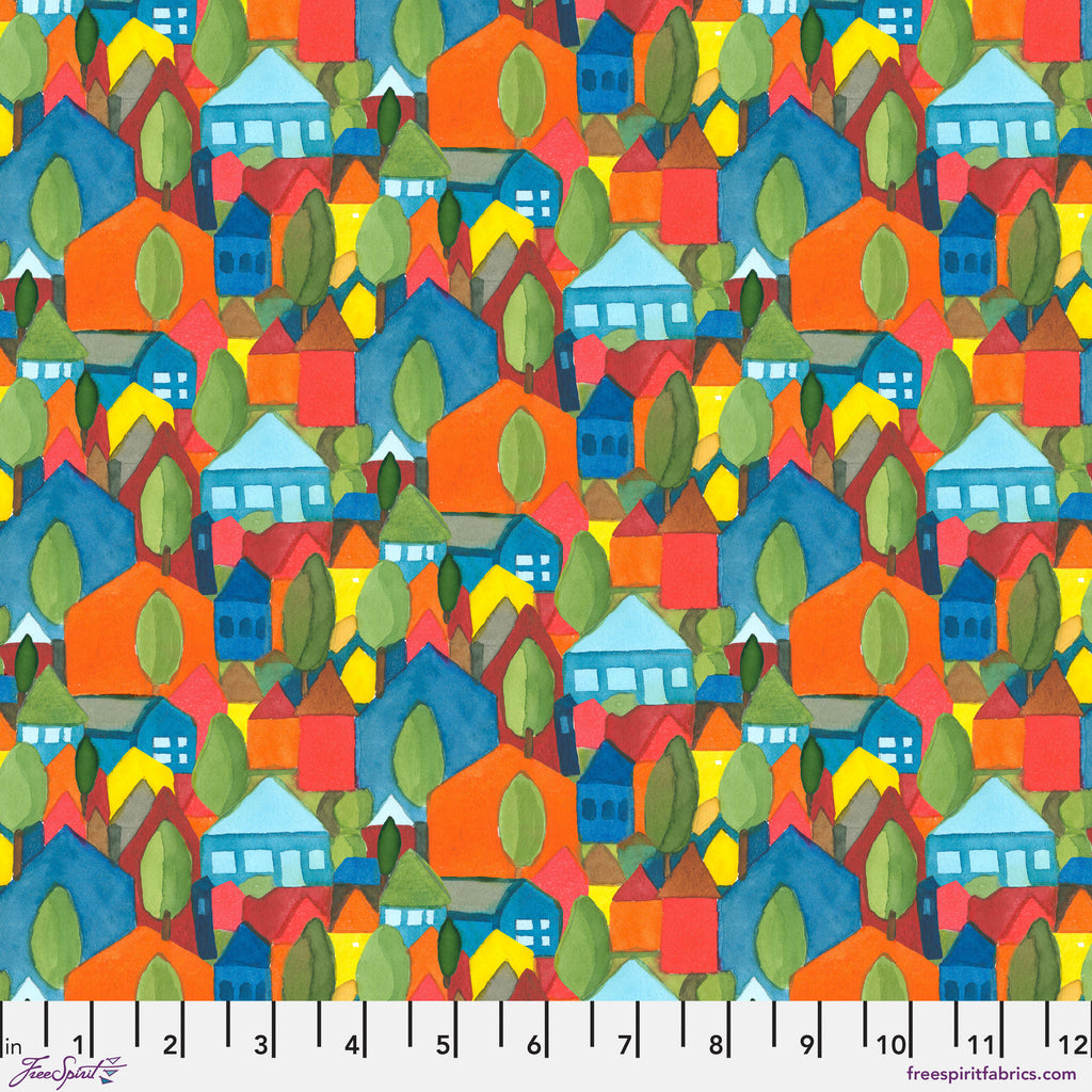 Bring the charm of small-town life to your next project with “My Neighborhood” from the Sisters Mountain Meadow collection by Kathy Deggendorfer for FreeSpirit Fabrics. This colorful print is filled with whimsical houses, winding roads, and vibrant trees—capturing the friendly, artistic spirit of Sisters, Oregon. Perfect for adding warmth and personality to quilts, bags, and home décor, this fabric tells a story all on its own.