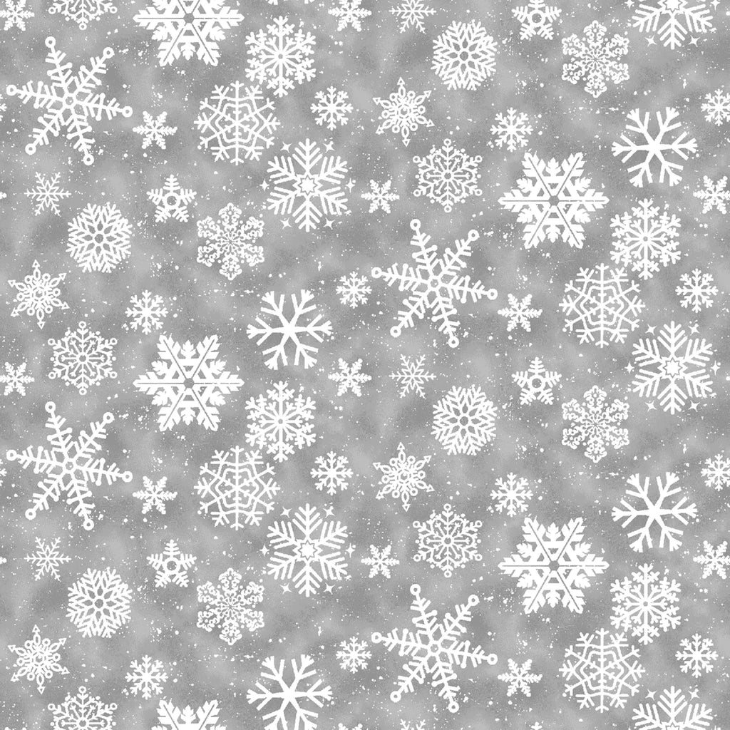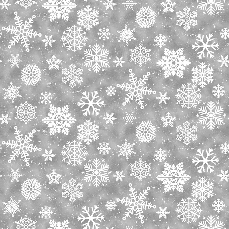 This soft gray flannel features scattered white snowflakes in a variety of delicate shapes and sizes, arranged in a gentle 3-inch repeat that gives the print a calm, balanced look. The subtle tonal background adds depth without overwhelming the design, making it an excellent choice for borders, backgrounds, and cozy seasonal projects. Made from 100% cotton flannel, it offers a warm, comforting feel ideal for quilts, pillowcases, pajamas, and winter décor. A versatile winter blender that works equally well on its own or as a coordinating print.
