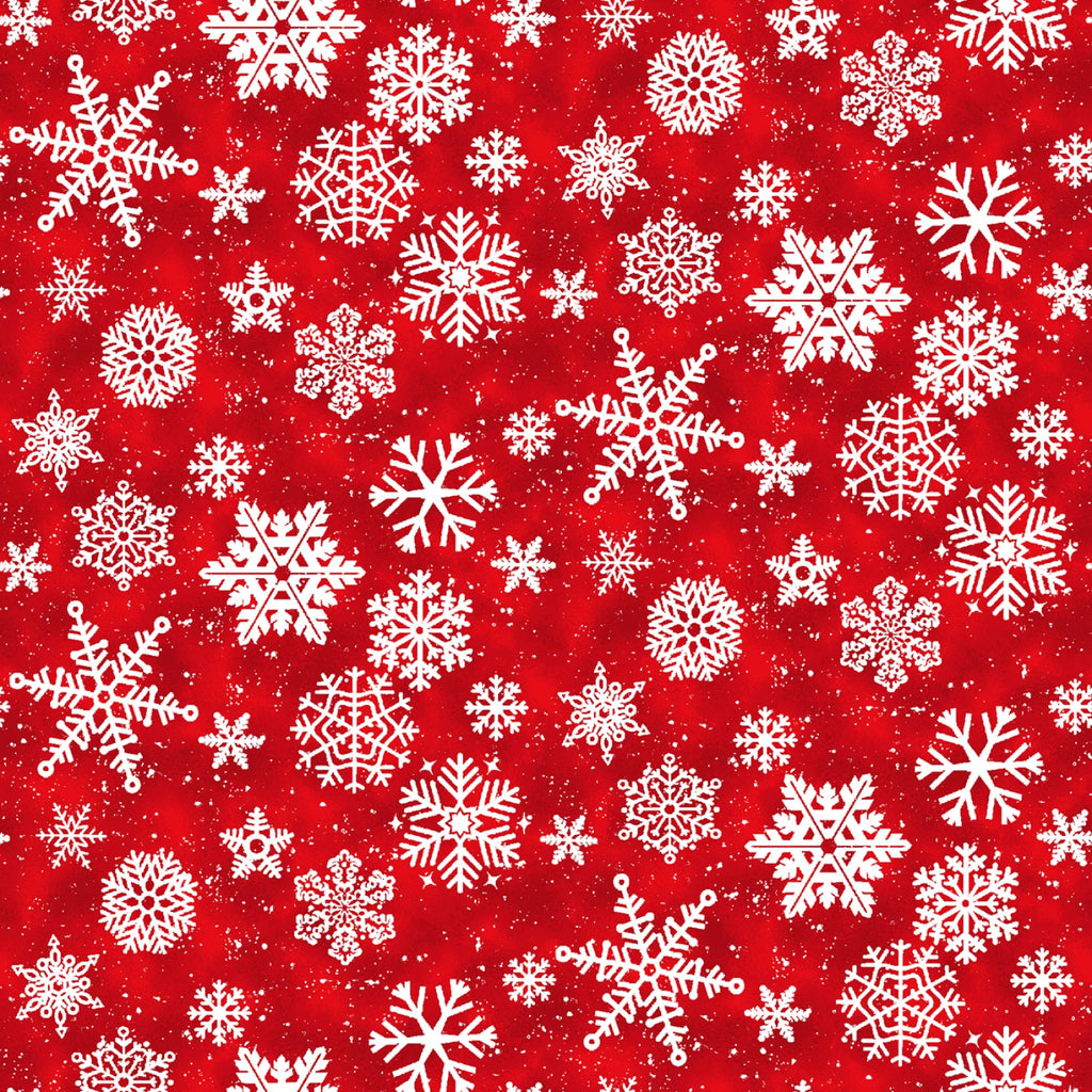 This bright red flannel features crisp white snowflakes in a mix of intricate shapes and sizes, arranged in a lively 3-inch repeat that adds festive energy to any winter project. The lightly textured red background gives the print depth and movement while keeping the overall look cheerful and eye-catching. Made from 100% cotton flannel, it offers a soft, cozy feel perfect for quilts, pillowcases, pajamas, and holiday décor. A bold winter blender and a fun coordinate for the Snow Crew collection or any Christmas-inspired sewing.