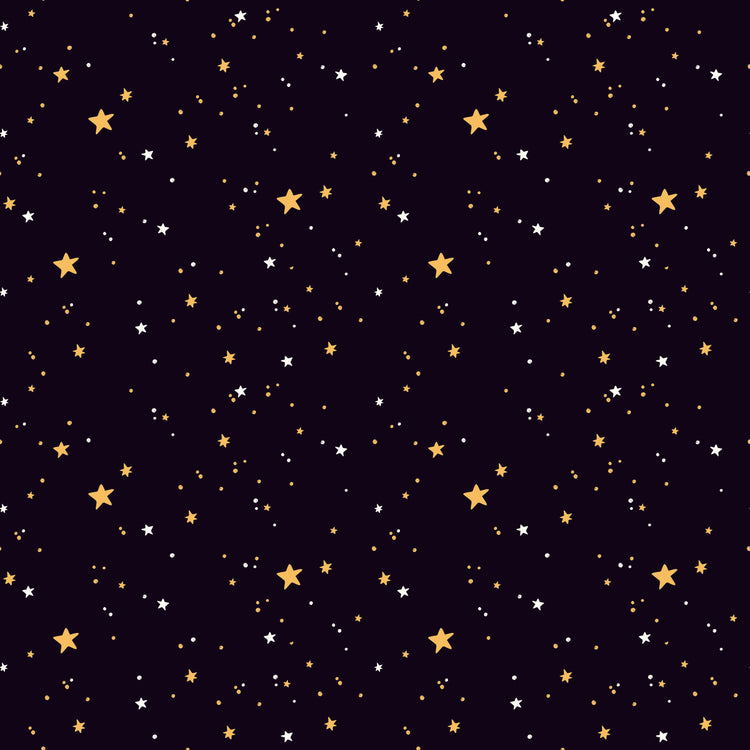 This print features scattered stars and dots. Machine wash cold / tumble dry low.