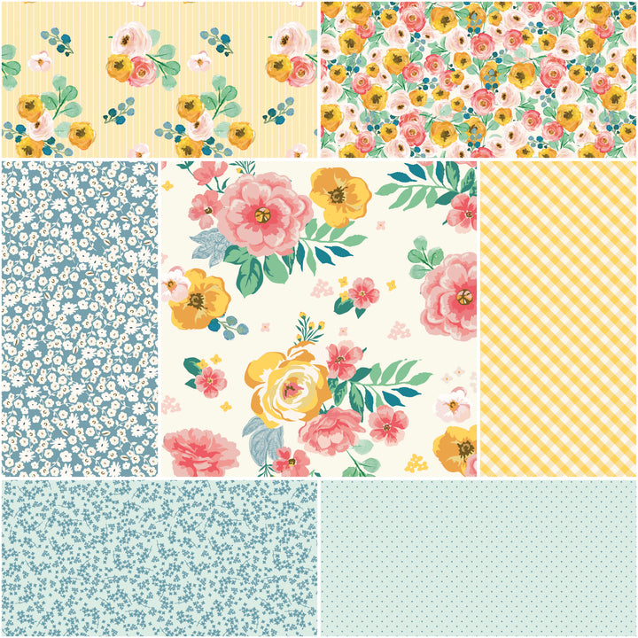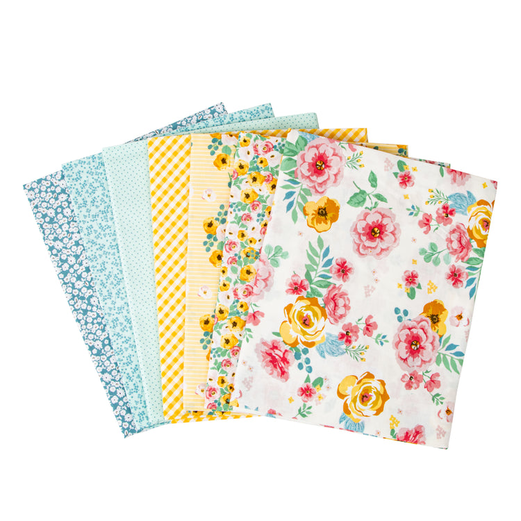 This precut bundle includes 1-yard cuts (36" x 44") from the Spring Gardens collection by My Mind's Eye for a total of 7 yards.