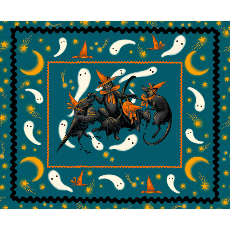The 'Storybook Halloween' collection by Rachel Hauer for FreeSpirit is inspired by the magic of spooky tales. Featuring black cats, ghosts, jack-o'-lanterns, and pumpkins, this enchanting fabric line comes alive with a striking color palette of turquoise, black, ivory, and orange. Perfect for crafting your own Halloween traditions and stories, this collection adds a touch of spooky sewing magic to any festive project.