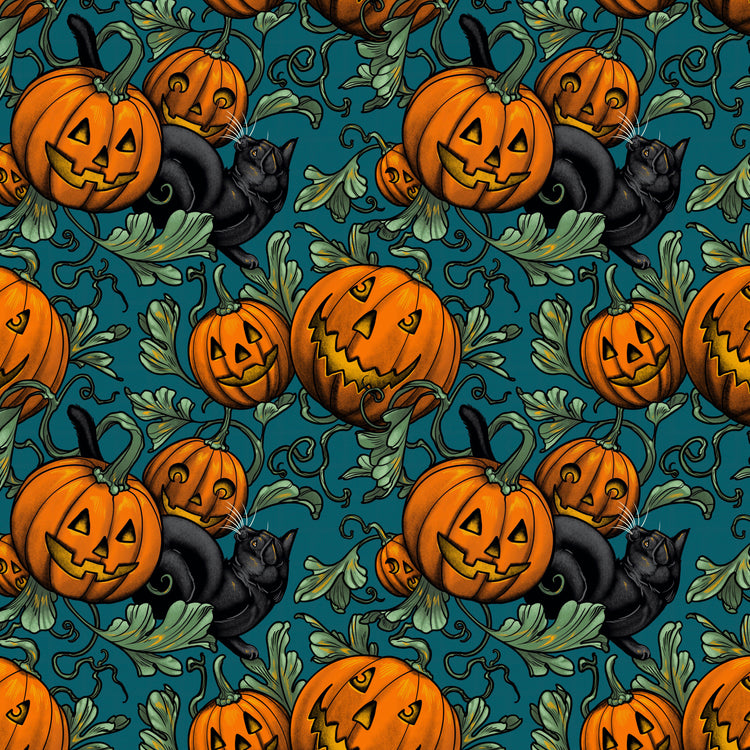 Storybook Halloween | Pumpkin Patch - Turquoise by Rachel Hauer for Free Spirit | PWRH067.TURQ