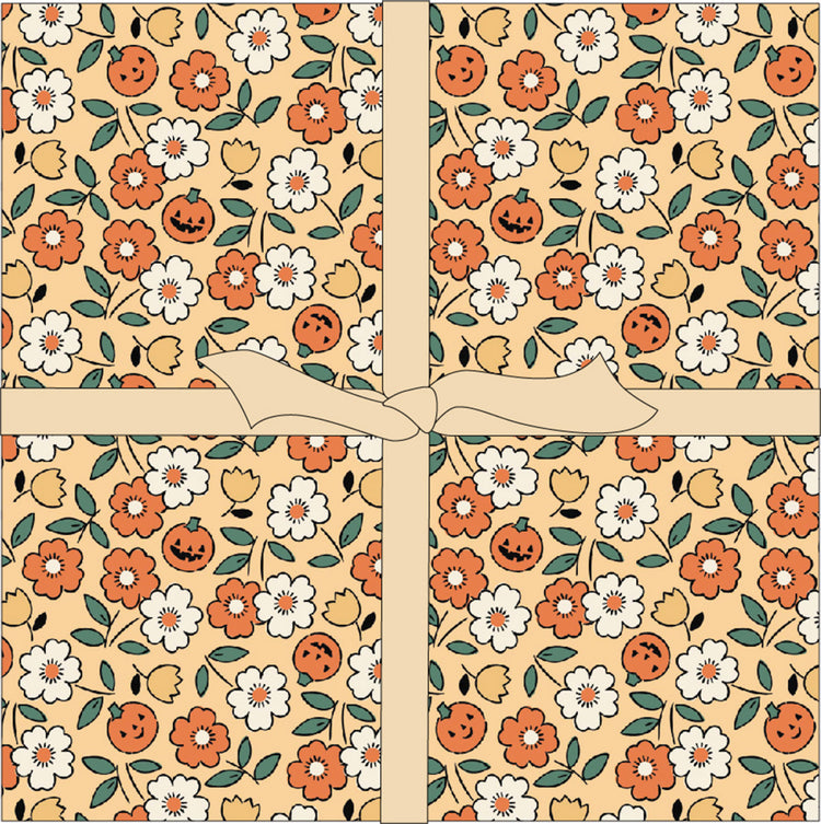 "Sweet Tooth" from Poppie Cotton is a charming vintage-inspired tribute to all the things we love about Halloween. The collection features witches riding brooms with bats flying overhead, pumpkins, candy, kittens with bowties, black cats, ghosts, skeletons, stars, polka dots and of course flowers. The color palette has a lovely vintage orange with black, cream, yellow and purple. This collection will have you sewing all kinds of projects from quilts to pillows to trick or treat bags to fall dresses and skirts. You will feel inspired by the combination of colors and eclectic designs.