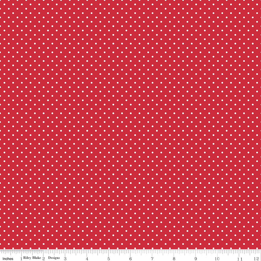 The "Swiss Dot" collection by Riley Blake features a timeless and versatile pattern of small, evenly spaced dots every 1/2" on solid backgrounds. These cotton basics come in a wide variety of colors, ranging from soft pastels to vibrant, bold hues, making them a suitable blender for numerous projects. Whether you're creating quilts, apparel, home decor, or accessories, the classic polka dot design adds a touch of charm. Printed on high-quality 100% cotton fabric, offering both durability and a soft, comfortable feel.