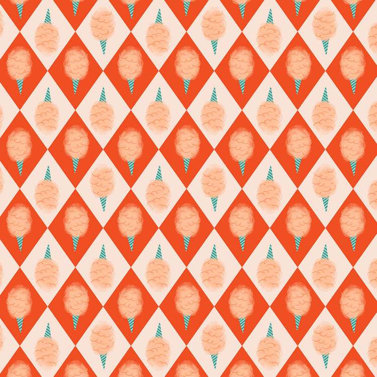 This print features cotton candy on a checkered diamond pattern.