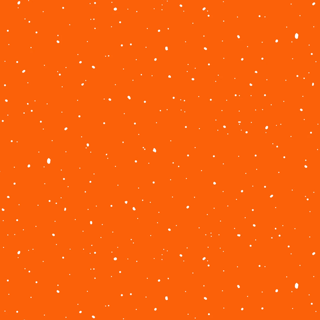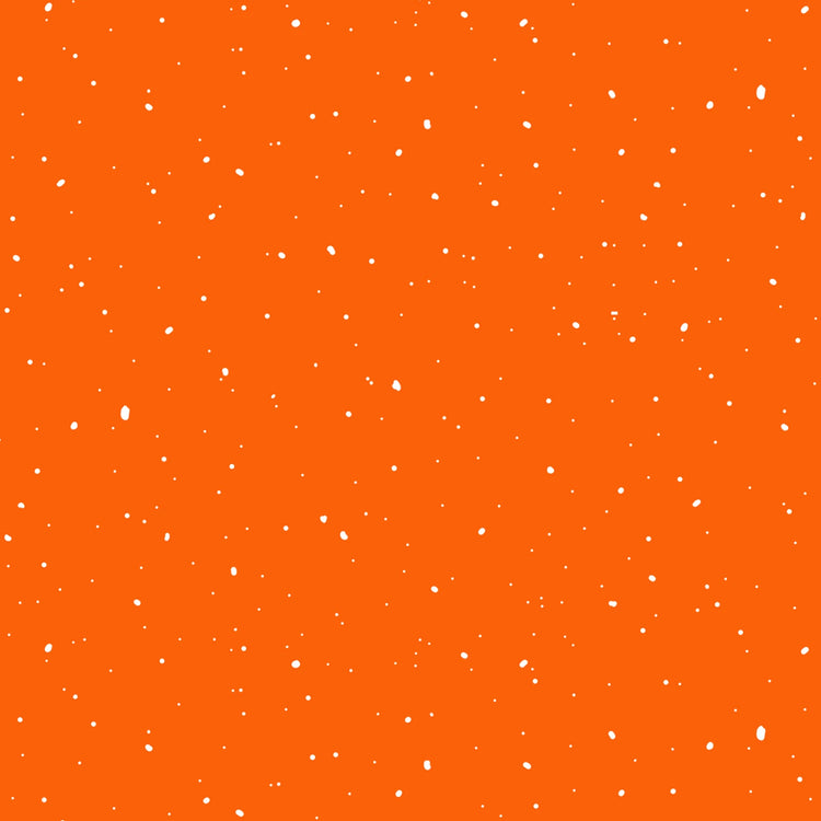 A bold orange background scattered with playful white snowflakes, printed on 100% cotton. Perfect as a blender or accent print, it adds a fun pop of retro winter charm to quilts, bags, and seasonal décor.