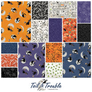 Enhance your Halloween creations with the enchanting illustrations of Heatherlee Chan in the "Toil & Trouble" collection by Clothworks. This bewitching fabric line features an array of classic Halloween motifs, including flying witches, eerie skeletons, intricate cobwebs, mysterious black cats, and whimsical toads. Some prints even glow in the dark! Perfect for adding a touch of spooky elegance to your projects, this collection is sure to help you showcase your timeless and tasteful style this Halloween season.